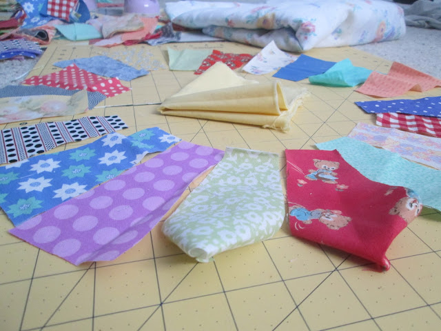 Today we would like to share with you how to make a scrappy granny square block. The finished blocks will measure 9" before sewn into a quilt top. The finished quilt will be twin sized, about 68" x 85".